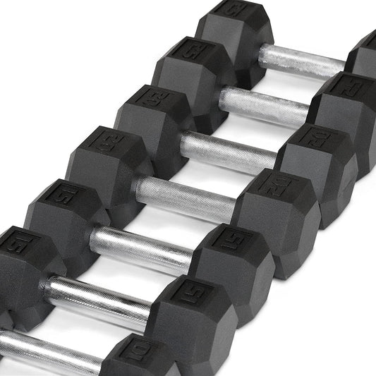 5-25Lb Rubber Coated Hex Dumbbell Set with a Frame Storage Rack Non-Slip Hex Shape for Muscle Ton...