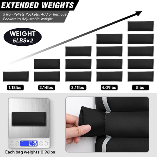Ankle Weights, Adjustable Leg Weights Straps for Exercise, Wrist Weight Set for Women and Men, Black