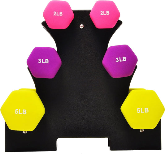 Neoprene Dumbbell Hand Weights, Anti-Slip, Anti-Roll, Hex Shape Colorful, Pair or Set with Stand