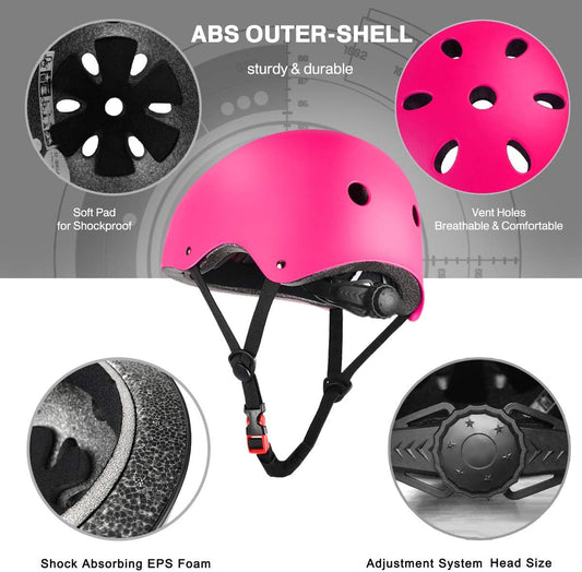 Adjustable Skateboard Skate Helmet with Protective Gear Knee Pads Elbow Pads Wrist Pads for Youth...