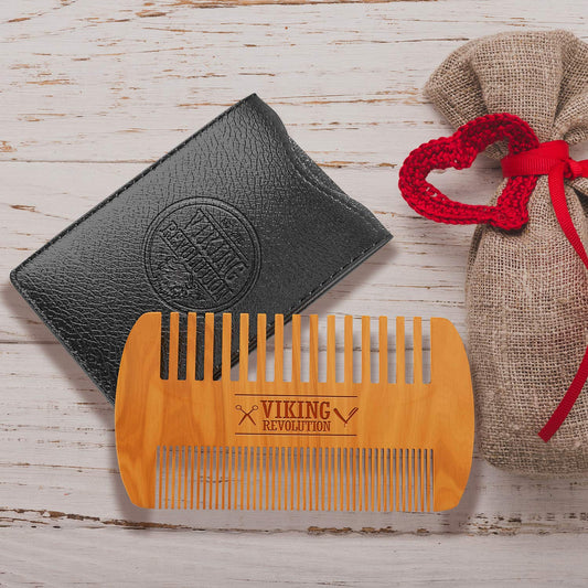 Wooden Beard Comb & Case, Dual Action Fine & Coarse Teeth, Perfect for Use with Balms and...