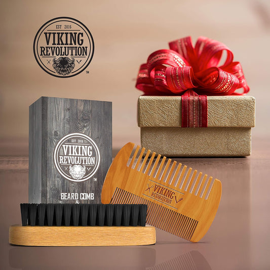 Natural Boar Bristle Brush and Pear Wood Comb Set for Men - Dual Action Grooming for Beards and M...
