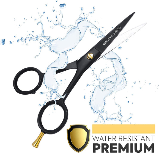 - 5'' German Beard Mustache Scissors - 2 Mustache Comb for Facial Hair with Beautiful Pou...