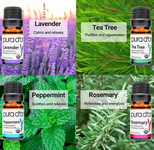 USDA Organic Aromatherapy Essential Oils Set (Top 6), 100% Pure Natural - Peppermint, Lavender, E...