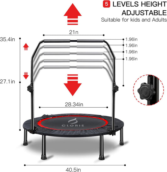Mini Trampoline for Adults Kids, Cardio Exercise Trampoline, Thick Steel Spring Fitness Workout R...